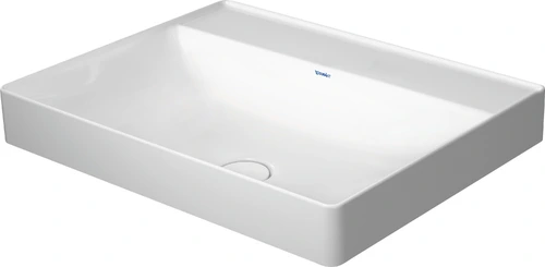Duravit DuraSquare, lavabo da appoggio, 60x47cm, senza foro per rubinetto, senza troppopieno, pannello posteriore smaltato, lucido