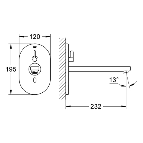 Elettronica a infrarossi Eurosmart CE per lavabi, funzionamento a rete, con miscelatore, proiezione 232 mm