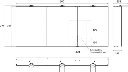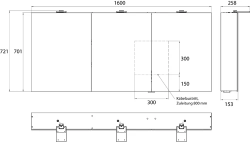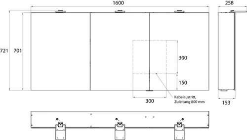 emco pure 2 Style Armadio a specchio illuminato a LED con faretti superiori, 3 porte, 1600x711x153 mm