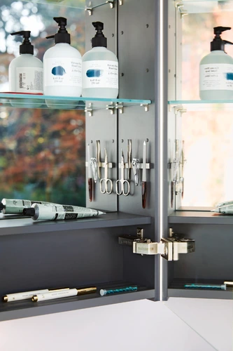 - la banda magnetica può essere fissata individualmente al lato del corpo, alla parete posteriore o alla porta dello specchio utilizzando un nastro adesivo per specchietti