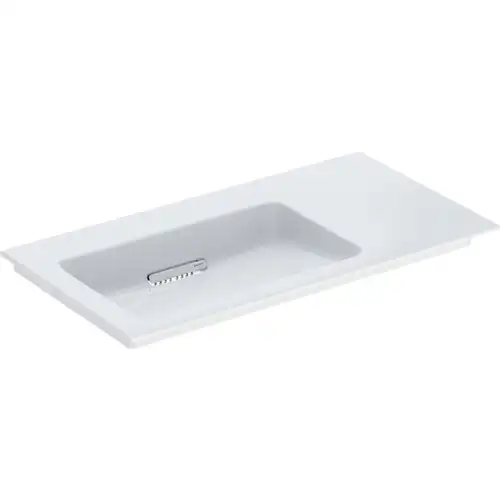 Il design sottile è accentuato dal bordo stretto e dalle finiture bianche e lucide. Il rivestimento KeraTect conferisce al lavabo una superficie liscia come la seta che non è solo gradevole alla vista, ma anche igienica e facile da pulire.