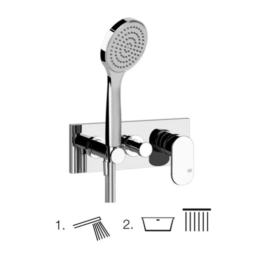 - 1 uscita: doccetta 2 uscite: dopo la commutazione uscita libera su corpo ad incasso 44639