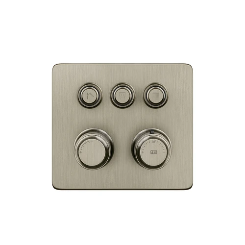 Gessi Hi-FI termostatico pronto per luso con comando a pulsante on/off, 3 vie, doccia a pioggia e doccetta, montaggio a parete
