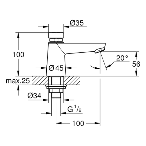 Grohe Euroeco CT rubinetti per l'acqua fredda, senza miscelatore, sporgenza 100 mm