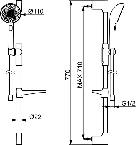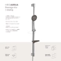 - composto da: doccia a mano, asta per doccia, supporto regolabile per asta per doccia, portasapone, flessibile doccia (1750 mm), possibilità di installazione variabile, tecnologia anticalcare, protezione antitorsione, protezione antitorsione per flessibile doccia