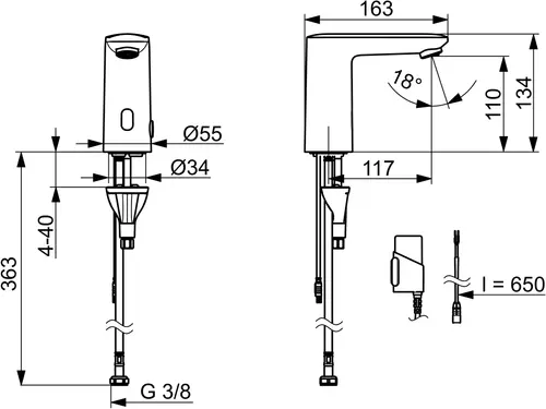 HANSA HANSAELECTRA miscelatore per lavabo, 3 V, Bluetooth, con sensore, sporgenza 117 mm, acqua fredda e miscelata, cromato