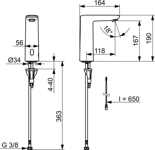 HANSA HANSAELECTRA miscelatore per lavabo, a batteria, Bluetooth, con sensore, sporgenza 118 mm, acqua fredda e miscelata, cromato