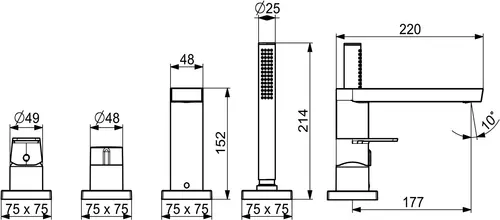 HANSA HANSASTELA Set di montaggio prefabbricato per vasca/doccia, 4 fori, rosone quadrato, cromato