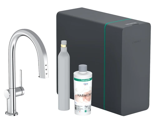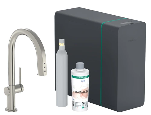 - notifica push quando la capacità del filtro e della CO2 è bassa (tramite l’app hansgrohe home)