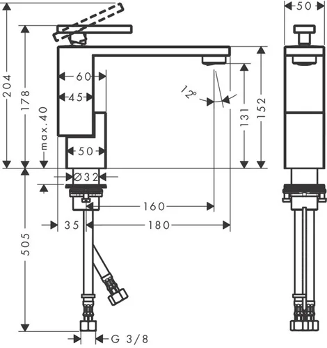 - Consiste di: Miscelatore monocomando per lavabo, set di scarico