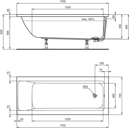 Ideal Standard Connect Air Vasche da bagno a forma di corpo 1700x700x465mm, bianco