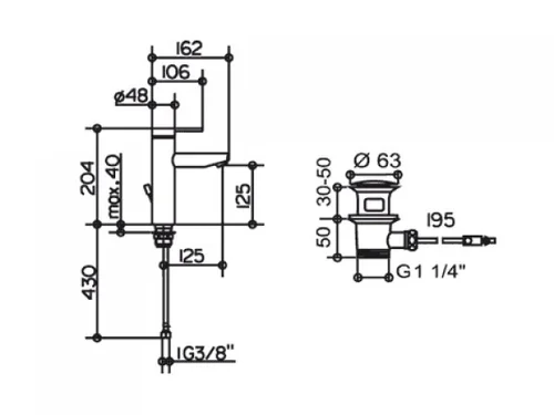 KEUCO PLAN blu, miscelatore monocomando per lavabo 130, con set di scarico, sporgenza 125 mm
