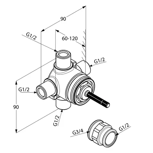 Kit deviatore a due vie KLUDI 1 premontaggio, 1 collegamento