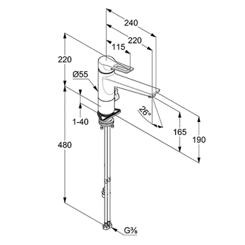 KLUDI MIX lavello miscelatore monocomando, maniglia a leva, cromato