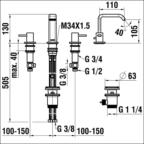 - 1 x miscelatore per lavabo a 3 fori