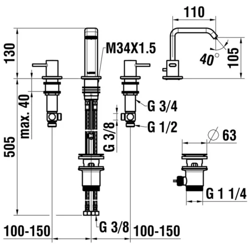 LAUFEN Meda Miscelatore per lavabo a 3 fori, con scarico, sporgenza 110 mm, cromo