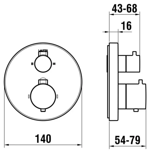 LAUFEN Meda Miscelatore per vasca a 2 maniglie, termostatico, da incasso, per Simibox