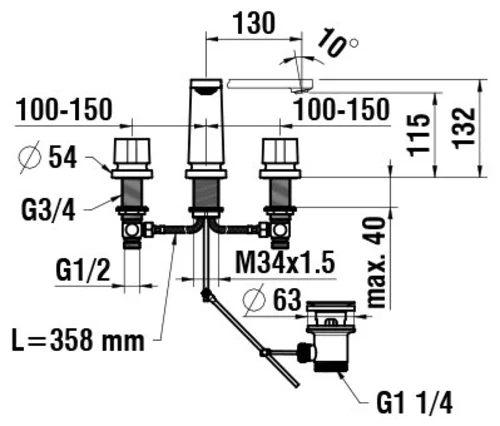 LAUFEN The New Classic miscelatore per lavabo a 3 fori, con scarico, sporgenza 130 mm
