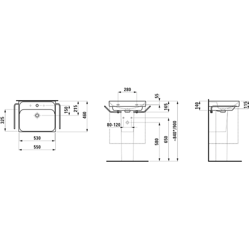 Lavabo LAUFEN Meda, da incasso, 550x460 mm, senza foro per rubinetto, senza sfioratore