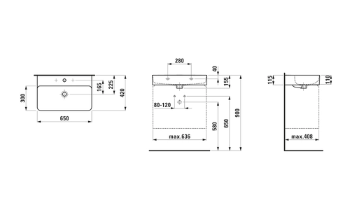 Lavabo LAUFEN VAL, sottopiano, senza foro per rubinetto, senza sfioratore, 650x420 mm