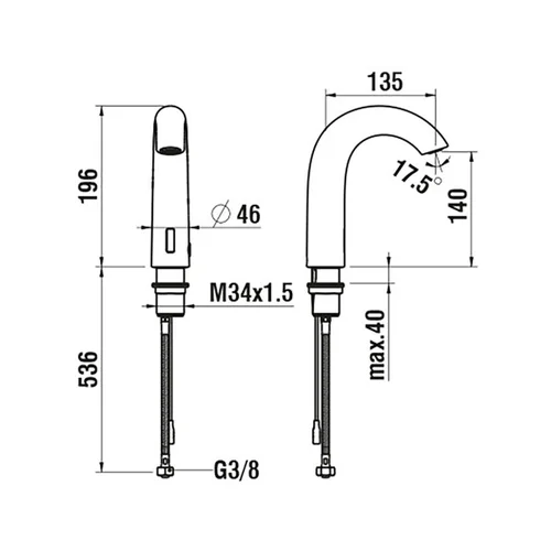Miscelatore elettronico per lavabo LAUFEN Curvetronic, funzionamento a rete, per acqua fredda/miscelata, sporgenza 135 mm
