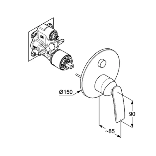 • 1 miscelatore monocomando da incasso per vasca e doccia