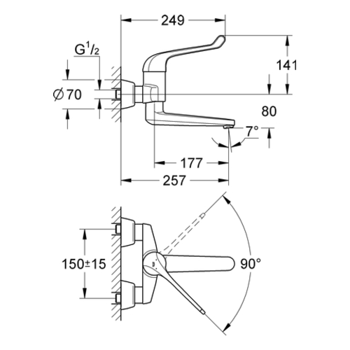 Miscelatore monocomando di sicurezza Grohe Euroeco Special, a parete, sporgenza 256 mm, senza salterello