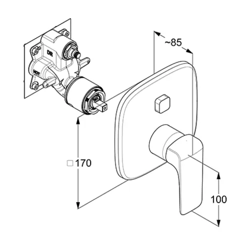 - 1 miscelatore monocomando da incasso per vasca e doccia