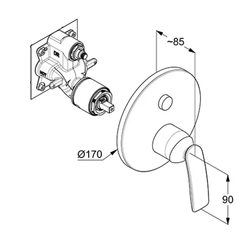 - 1 miscelatore monocomando da incasso per vasca e doccia
