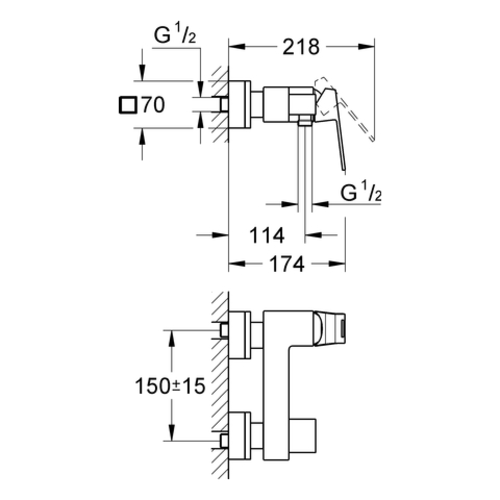 Miscelatore monocomando per doccia a parete Eurocube, Grohe