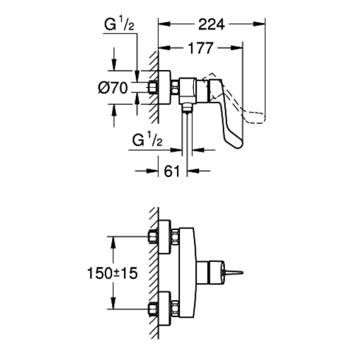 Miscelatore monocomando per doccia Eurosmart, a parete, maniglia a leva lunga Grohe