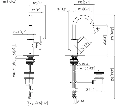 - Altezza fino all'aeratore 202 mm