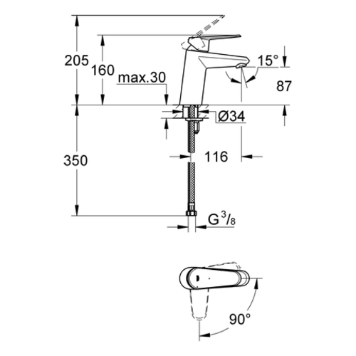 Miscelatore monocomando per lavabo Eurodisc Cosmopolitan di Grohe, dimensione S, EcoMode, sporgenza 116 mm, senza scarico, cromato