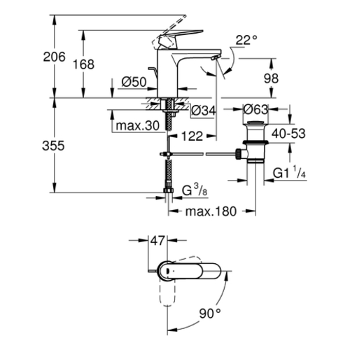 - 1 x miscelatore monocomando per lavabo, misura M