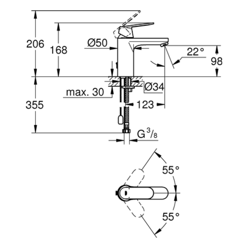 Miscelatore monocomando per lavabo Eurosmart Cosmopolitan, misura M, sporgenza 123 mm, catenella a scomparsa Grohe