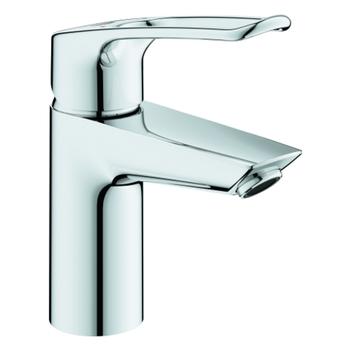Miscelatore monocomando per lavabo Eurosmart di Grohe, misura S, sporgenza 119 mm, scarico push-open PUSH, maniglia a leva aperta