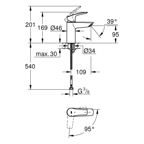 - 1 x miscelatore monocomando per lavabo, misura S
