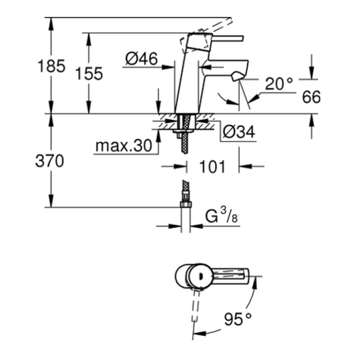 Miscelatore monocomando per lavabo Grohe Concetto, dimensione S, funzione risparmio energetico, sporgenza 101 mm, senza scarico, cromato