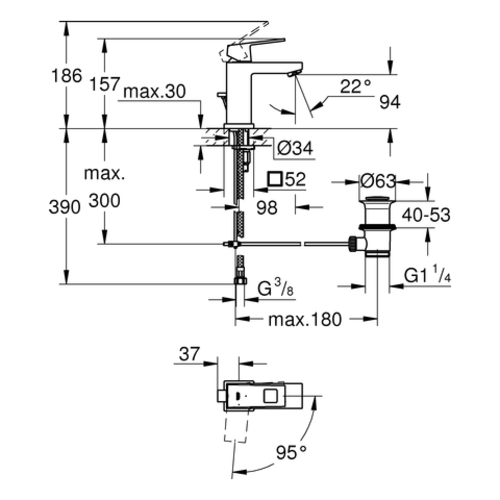 Miscelatore monocomando per lavabo Grohe Eurocube, dimensione S, scarico a scomparsa, sporgenza 98 mm, EcoMode, cromato