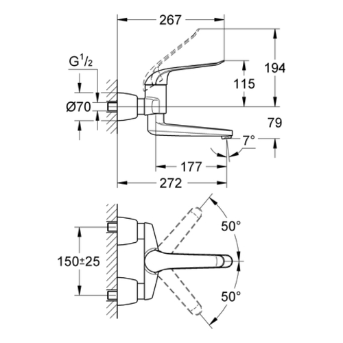 Miscelatore monocomando per lavabo Grohe Euroeco Special, a parete, sporgenza 274 mm, senza scarico, attacchi S bloccabili