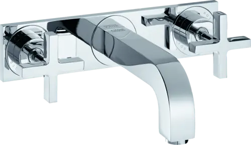 Miscelatore monocomando per lavabo hansgrohe AXOR Citterio 3 fori da incasso, bocca 226 mm, maniglie a croce, piastra per montaggio a parete