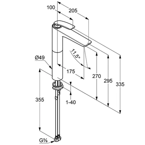 Miscelatore monocomando per lavabo KLUDI BALANCE, installazione monoforo, altezza bocca 270 mm, 3,8 l/min