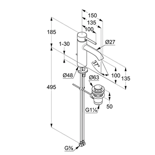 - 1 x Miscelatore monocomando per lavabo 100
