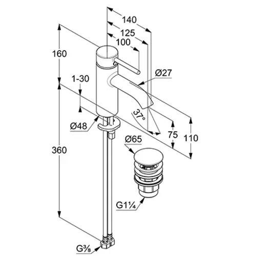 - s-pointer: Angolo del getto d'acqua regolabile, si adatta a diverse forme di lavabo.