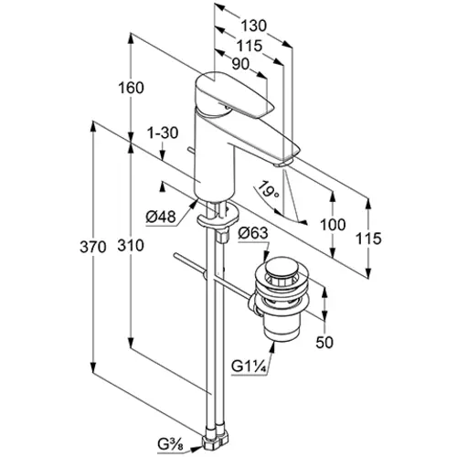 Miscelatore monocomando per lavabo KLUDI PURE, altezza bocca 100 mm, con set di scarico, EcoPlus, cromato