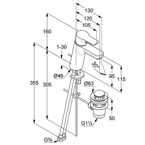 - 1 x Miscelatore monocomando per lavabo 100