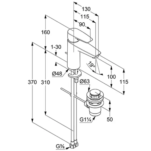 - 1 x miscelatore monocomando per lavabo 100