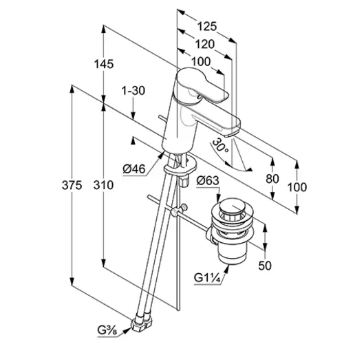 Miscelatore monocomando per lavabo KLUDI PURE, altezza bocca 70 mm, scarico in metallo, 3,8 l/min, EcoPlus, cromato