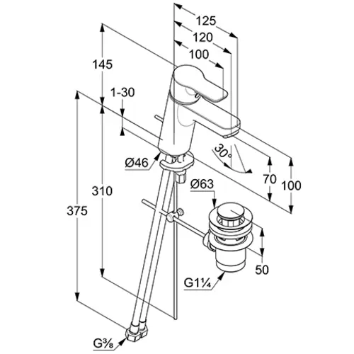 Miscelatore monocomando per lavabo KLUDI PURE, altezza bocca 70 mm, scarico in metallo, cromato