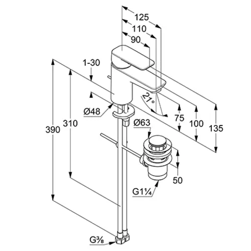 - 1 x Miscelatore monocomando per lavabo 75